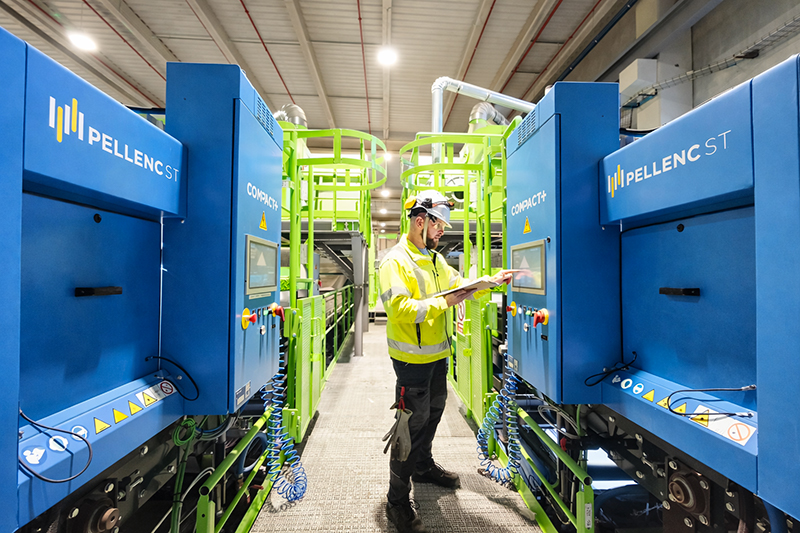 Pour mener à bien ce projet, PreZero a confié l’intégration de l’usine à Bianna et le tri optique à Pellenc ST. Les équipements fournis appartiennent à la gamme des trieurs optiques Compact+™, conçue pour les environnements industriels contraints et poussiéreux. Ces machines se distinguent par leur facilité d’intégration, leur faible consommation énergétique et des coûts de maintenance optimisés, notamment grâce à une réduction des consommations d’air comprimé et des pièces d’usure. L’ensemble des trieurs est équipé de la nouvelle chaîne de détection Flow, combinant un spectromètre couvrant un spectre NIR/VIS étendu et un éclairage focalisé haute précision. Cette configuration améliore significativement la pureté des fractions récupérées.