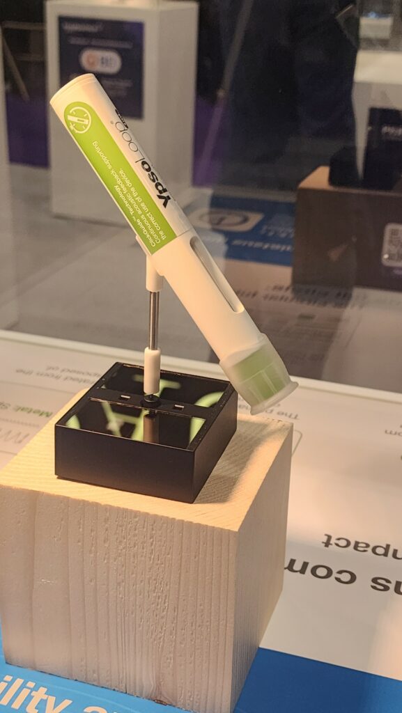 Le prix du Design orienté patient est revenu à Ypsomed pour son stylo auto-injecteur YpsoLoop à usage unique. Conçu pour être intuitif et facile à utiliser, ce dispositif prérempli (disponible en 1 ou 2 ml) se distingue également par son approche environnementale. Grâce à une architecture en sous-ensembles mono-matériaux aisément séparables et donc recyclables, YpsoLoop affiche une réduction significative de son empreinte carbone (jusqu’à 87% pour une empreinte carbone de 18 g d’équivalents CO2 par produit) par rapport aux stylos auto-injecteurs traditionnels. Autre avantage : la solution s’adapte aux lignes existantes à l’instar de la ligne de remplissage, de finition et d’assemblage final YpsoMate®, ne nécessitant aucun investissement.