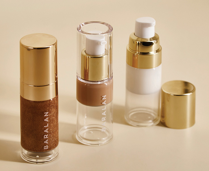La personnalisation est une autre tendance : «les systèmes multi-chambres des flacons airless, qui permettent de combiner plusieurs actifs sans les mélanger avant utilisation, plaisent aux consommateurs», remarque Caroline Aubert, directrice Marketing International Soin d’Aptar Beauty. Le groupe a combiné technologie et design premium afin de développer la dernière génération du Double Sérum de la marque Clarins, un flacon à double chambre pour une distribution deux-en-un. Le flacon interne donne l’illusion d’être suspendu à l’intérieur du flacon principal transparent. Le nouveau système de dosage sur-mesure délivre une dose progressive – d’une simple goutte à une noisette de produit – assurant ainsi sa juste utilisation. Ce packaging contient par ailleurs 94% de matériaux recyclables et 24% de matériaux recyclés. 85% du poids total du produit intègre du rPET chimique et mécanique. Dans une période de «premiumisation» des emballages, les marques restent demandeuses de solutions airless pour de nouvelles applications, comme les produits pour le contour des yeux ou autres zones sensibles. «Nous observons un intérêt croissant pour les systèmes airless dotés de dispositifs de distribution spécifiques, comme des applicateurs, ainsi que pour des solutions rechargeables faisant référence à l’univers du laboratoire dans l’idée de véhiculer une image plus technique, axée sur la performance», souligne Andrea Ucchino, directeur du design EMEA pour Berlin Packaging. «L’esthétique reste importante dans la conception de l’emballage. L’une de nos dernières innovations est le piston invisible intégré à la gamme DEA Airless Glass. Tout en assurant la distribution du produit, ce piston permet de conserver un design pur, laissant le verre et la formule entièrement visibles. Une autre innovation réside dans le disque inférieur personnalisable du piston, pouvant être orné de logos ou d’éléments décoratifs propres à la marque», indique Maurizio Ficcadenti, directeur R&D de Baralan. La gamme DEA comprend désormais des formats de 15, 30 et 50 ml, trois options de pompe crème et une nouvelle pompe spray. L’esthétisme est renforcé par la décoration, importante sur les pack airless premium. «Les métallisations évoluent vers des tons plus vibrants et expressifs ; les textures et reliefs se fondent avec des palettes naturelles pour créer de la matérialité et un aspect plus artisanal dans les produits industriels. Dans le même temps, les finitions givrées et les surfaces au toucher doux restent très appréciées sur les emballages airless, ajoutant du toucher, de l’identité et une présence dans le geste d’utilisation», poétise Andrea Ucchino.