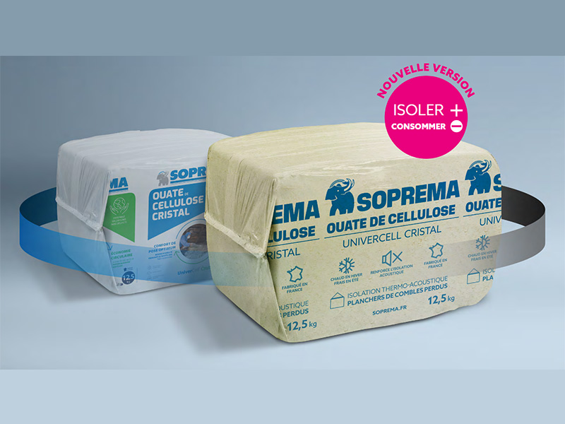 La solution biosourcée ouate de cellulose Univercell Cristal de Soprema, destinée à l’isolation des combles perdus en neuf et en rénovation, améliore ses performances avec un nouveau packaging entièrement recyclable et un meilleur pouvoir couvrant.